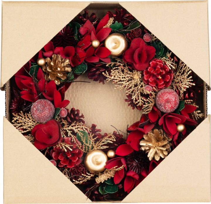 Charakteristika: Vánoční věnec MagicHome v červeno-zlaté barevné kombinaci je krásnou a stylovou dekorací, která vnese do vašeho domova pravou sváteční atmosféru. Je ozdoben detailně propracovanými prvky – šiškami, kuličkami, květinami a třpytivými ozdobami v luxusním červeno-zlatém provedení. Věnec je vhodný k zavěšení na dveře, stěnu nebo do interiéru jako elegantní doplněk vánoční výzdoby.