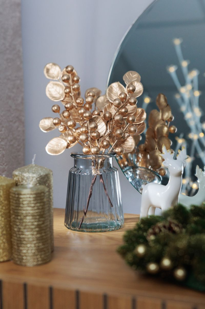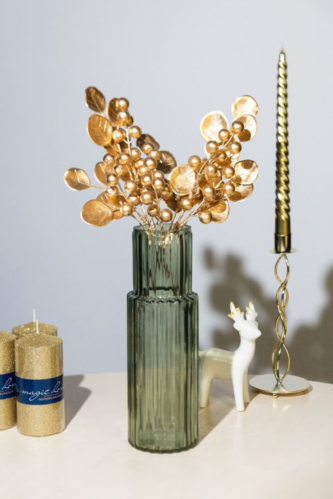 Charakteristika: Větvička je krásnou sváteční dekorací, která vynikne ve vánočních aranžmá, kyticích nebo jako samostatný doplněk. Je zdobená jemnými bobulkami ve zlaté barvě, které působí elegantně a slavnostně. Tato dekorace přinese do vašeho interiéru luxusní a hřejivý vánoční nádech. Výška: 27 cm.
