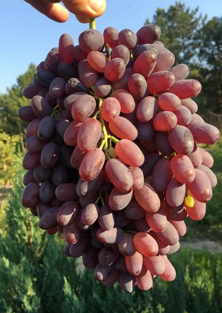 Středně časná bezsemenná réva s velkými třásněmi sladkých bobulí růžové barvy.