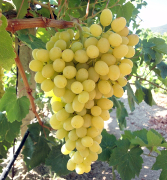 Oblíbená stolová odrůda s velkými bezsemennými bobulemi zlato žluté barvy.