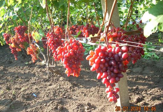 Raná stolní odrůda s velmi velkými bobulemi růžové barvy s výjimečnou chutí.