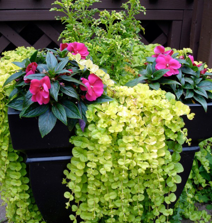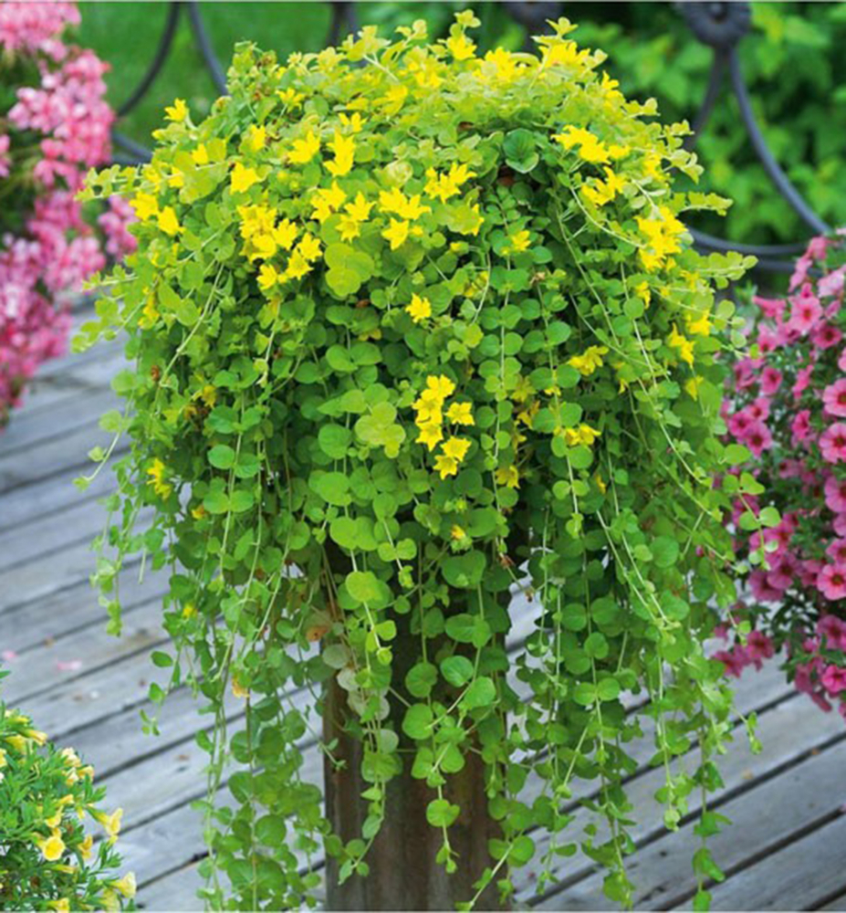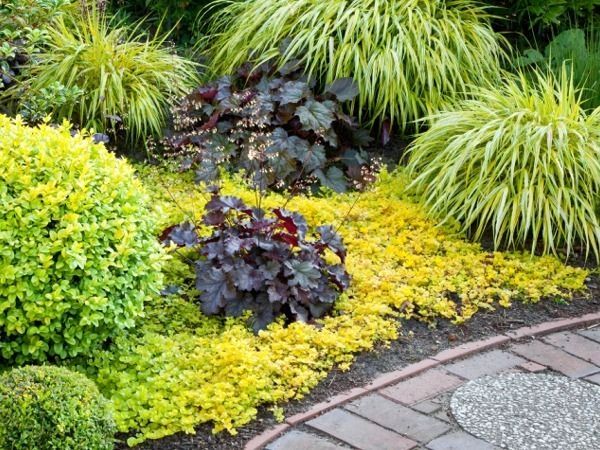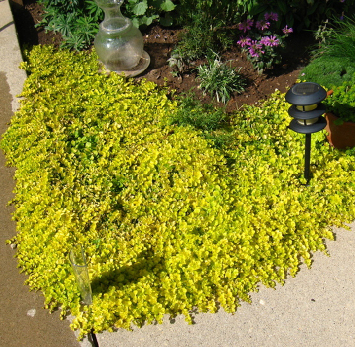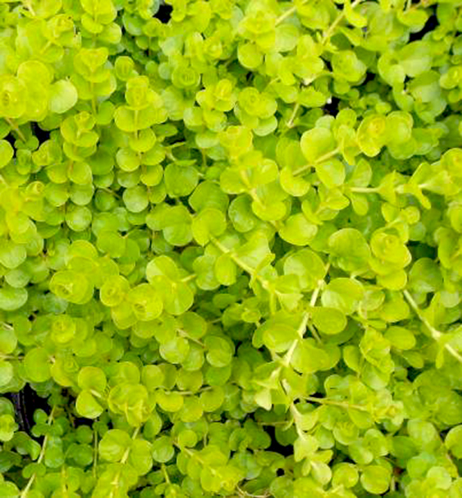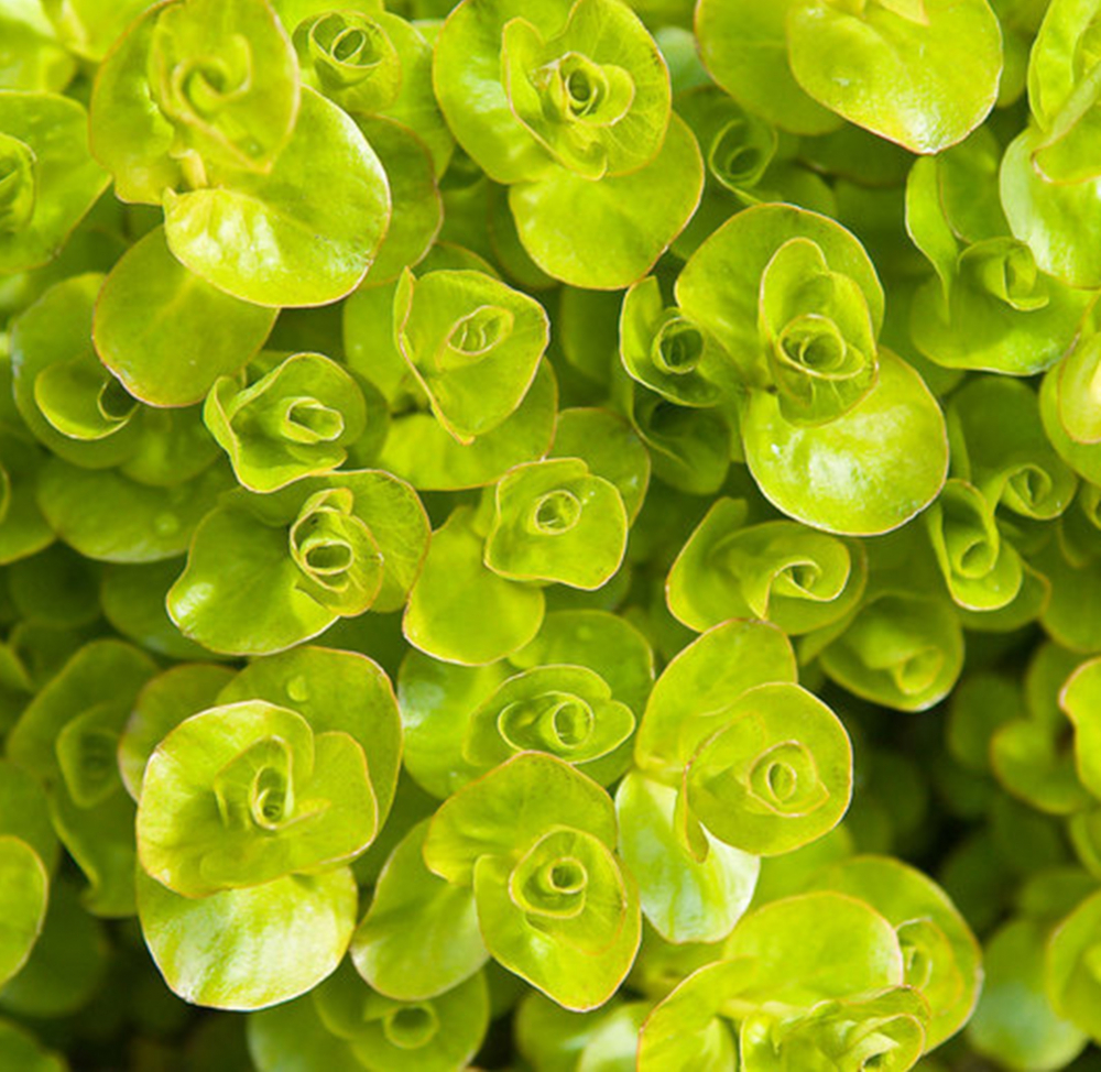 Nenáročná kobercovitá trvalka s okrouhlými listy svěží limetkově zelené barvy.
