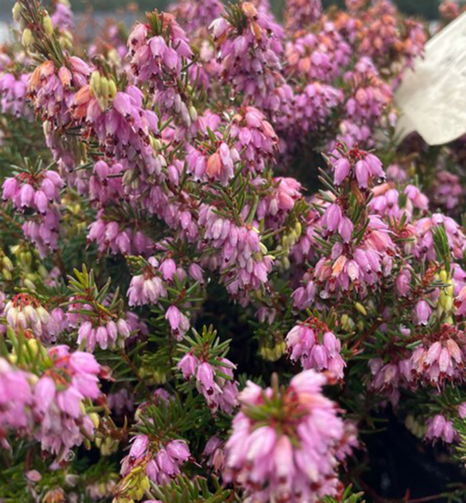 Charakteristika: Vřesovec 'GHOST HILLS' vytváří hustý, půlkulovitý až mírně rozložitý keř s jemným, jehličkovitým tmavě zelenými listy, které zůstávají dekorativní během celého roku. Dorůstá výšky 30–50 cm a šířky 50–80 cm, což z něj činí ideální volbu pro záhony, skalky, okraje chodníků nebo květináčové výsadby. Hlavní předností odrůdy 'GHOST HILLS' je bohaté a dlouhotrvající kvetení – jemné růžovofialové zvonkové květy se objevují od prosince do dubna.