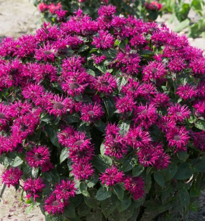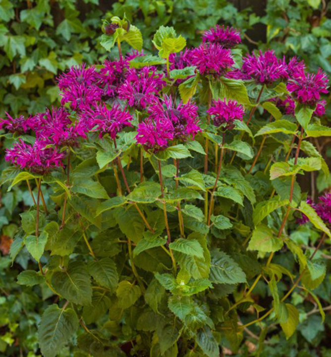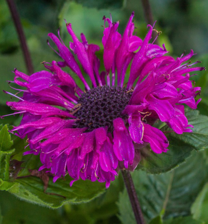 Okouzlující kombinace střapatých purpurových květů a aromatických listů.