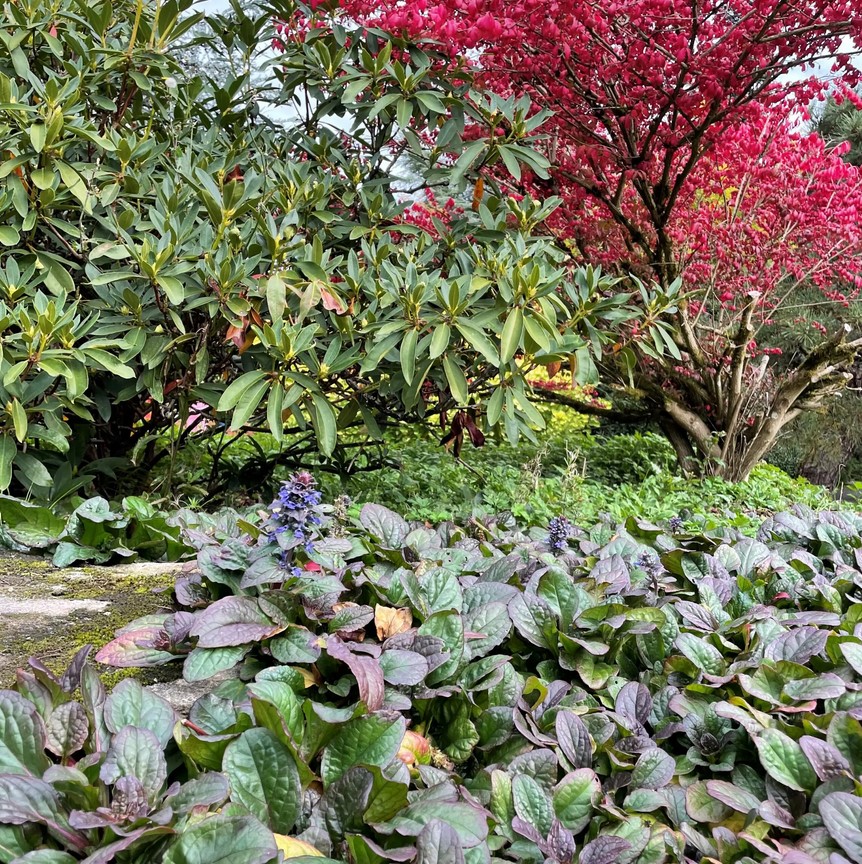 Ajuga reptans ´MAHOGANY´, v záhone